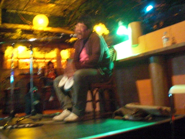 森の中から来た人、ボンゴだけで叩き語りするひと、オケだけほぼ演劇状態のひと、飛行機乗り遅れて自腹できたひと、ふだんバンドマンで独り勝負してるひと、原点に帰ろうと昔、衝撃を受けた曲をカバーする人様々。