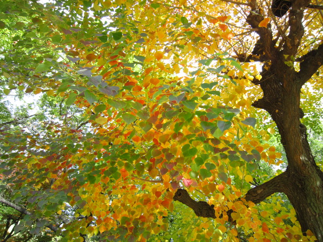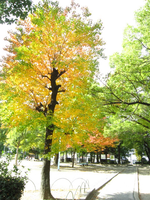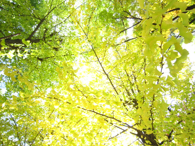 いちょうのはっぱも 1枚の中に みどりから黄色に変わろうとしてて、