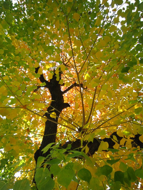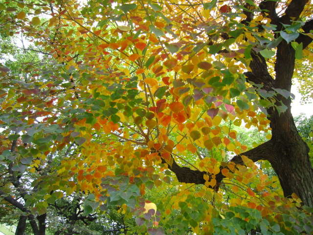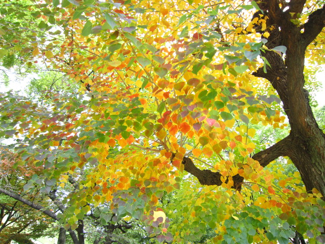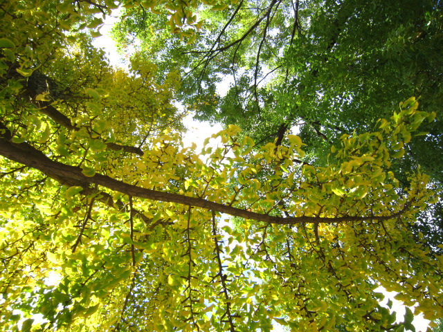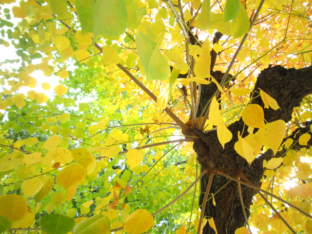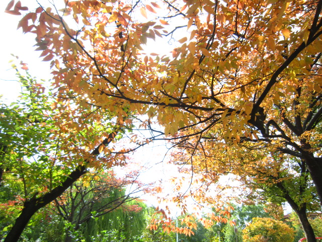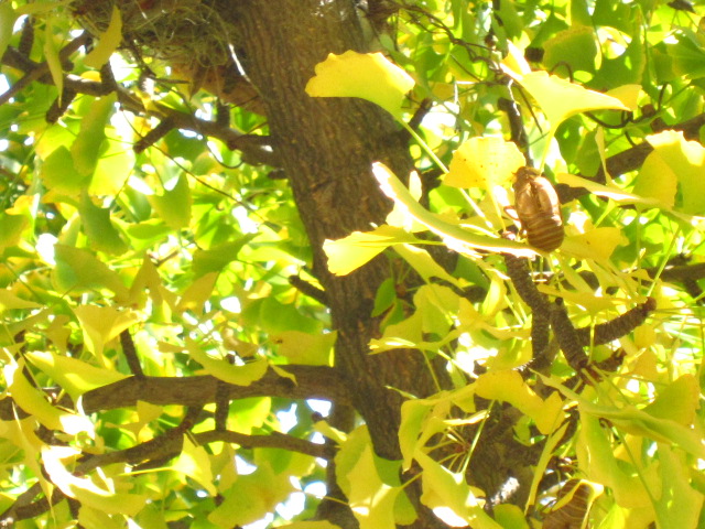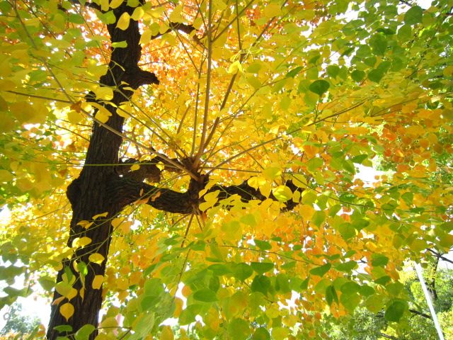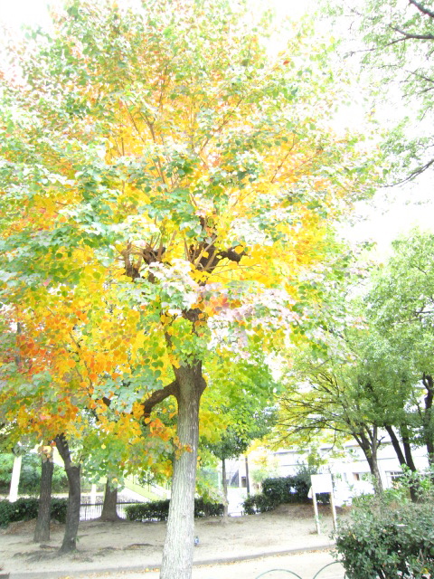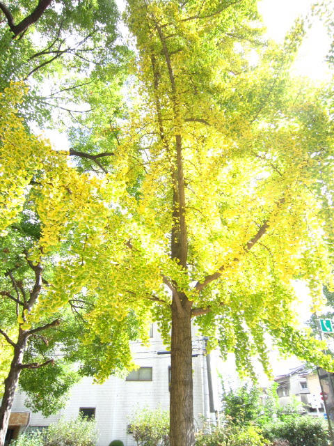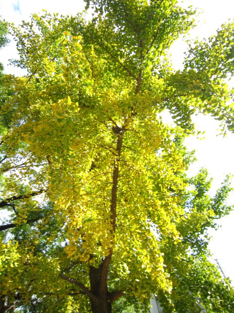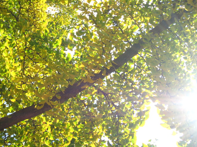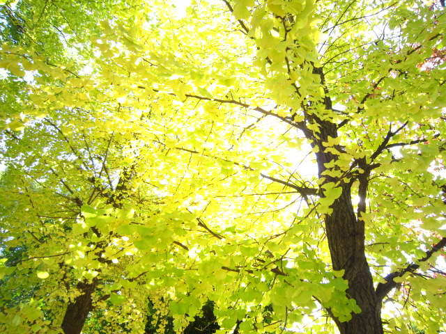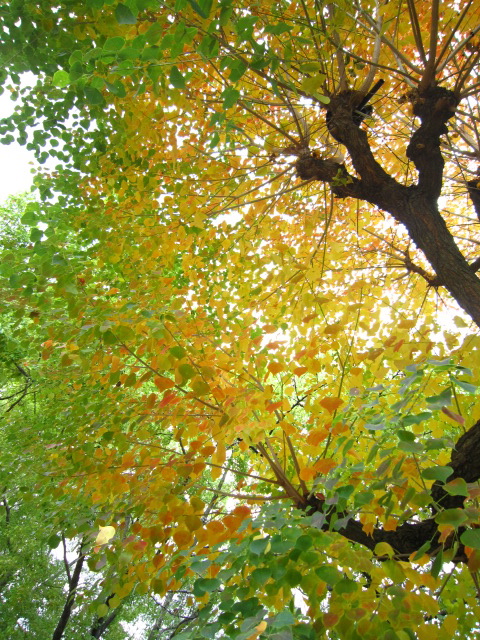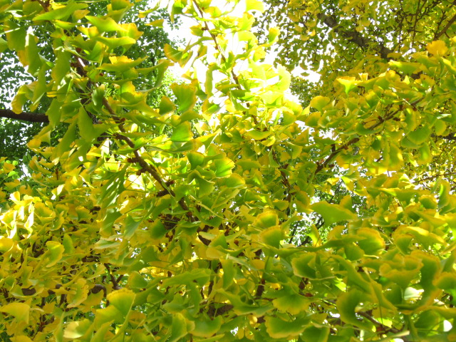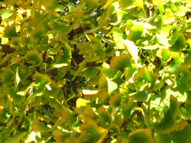 いちょうのはっぱも 1枚の中に みどりから黄色に変わろうとしてて、